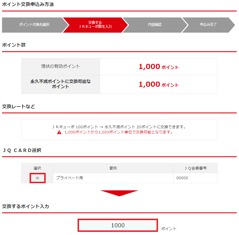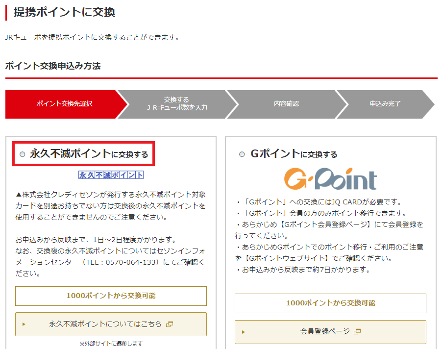 【事前準備後】JRキューポから永久不滅ポイントへの交換