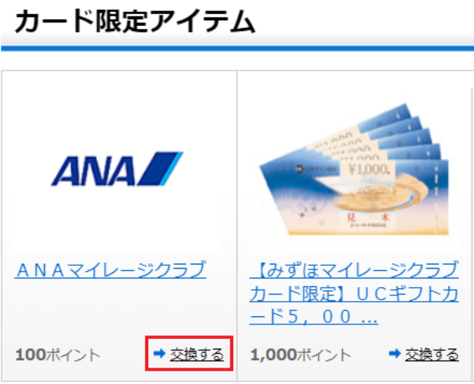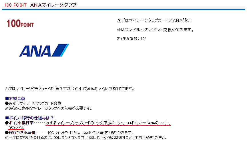 上記記載のとおり、「みずほマイレージクラブカード/ANA」のポイント換算率は、
